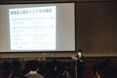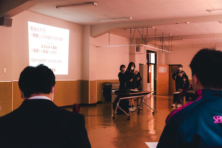 5月10日(火)・17日(火)2週にわたり総合的な探究の時間において「平和と産業・環境・文化」を主なテーマとして2学年が体育館で学年発表、3学年が7つのテーマごとに教室に分かれて発表を行いました。発表に関わる資料はiPad等の機器を駆使して生徒自ら作成し、発表するだけではなく生徒全員からのフィードバックを受けることでその課題について共有、解決方法を模索していきます。総合的探究の時間は、答えのない時代を生きるために必要な能力として「表現力」「読解力」「先見力」「傾聴力」「共生力」「問題解決力」「自己啓発力」の7つ力を3年間を通じて育んでいくことを目的にしています。1年生では小論文への取り組みや、修学旅行での経験も視野に入れた平和に関する探究学習を行います。2年生になると産業・文化・環境に関する探究学習を行い、修学旅行で現地に赴き平和に関する学習や産業・文化・環境に関する探究学習をさらに深めます。事後学習としても経験をまとめ、3年生ではこれまで学習してきたことを北海道と関連付けて個人で深め、論文としてまとめます。