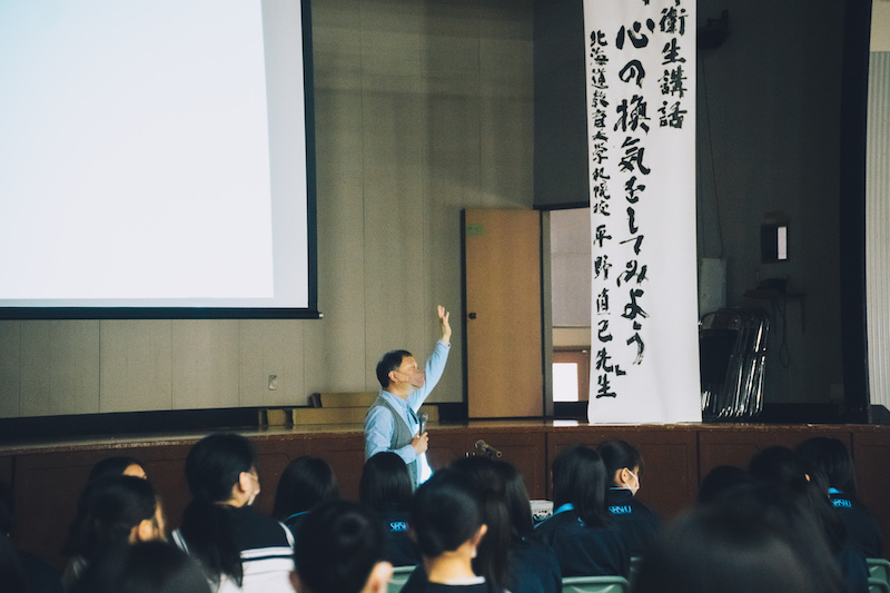 6月30日(木)、本校体育館にて1年生を対象に精神衛生講話(演題「心の換気をしてみよう」)が行われました。講師は北海道教育大学札幌校平野直己先生にお越しいただきました。高校生となり環境の変化がある新入生にとって少しでも悩みやこころの様子が整理させて充実した高校生活が送れるようにお話していただきました。新型コロナウイルス感染拡大の影響からもこれまでにない変化を経験している生徒にとって、講話やチェックリスト等を通して自身の心の健康を保つために大切なヒントを得ることができたかと思います。ご講演いただきました平野先生、本当にありがとうございました。