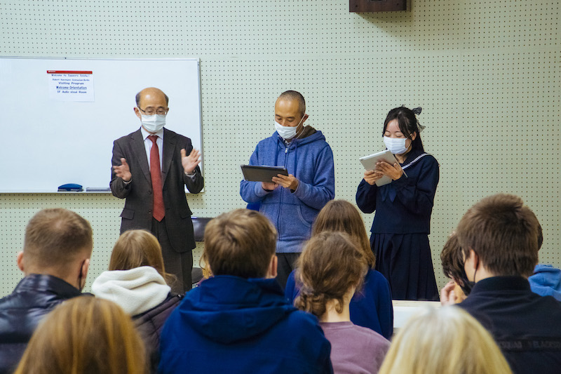 11月7日(月)から11月14日(月)の日程でドイツベルリンにあるロベルト・ハーベマン・ギムナジウム※1(日本の高等学校段階の教育)から訪問団が来日し、生徒12名と引率の先生2名の計14名が来校しました。滞在中はのホームステイ(ホストファミリーは本校生徒)を通し、日本での生活がスタートさせます。「はじめてホームステイの受け入れを経験するのでとても楽しみです。お寿司とか日本の文化も体験してほしい。あまり身構えないでリラックスできる環境に出来たら。協力しながら一緒に学びたいです。」留学生と1週間共に過ごす工藤くんとご家族。本校にて授業、部活動の体験を通し、静修生たちと交流を深めます。