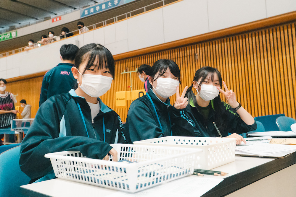 12月9日(金)、北海道立総合体育センター(北海きたえーる)で本校の球技大会を行いました。新型コロナウイルス感染拡大のため実施時間や学年別での実施等安全面を考慮しながらの開催となりましたが大きなケガもなく無事に開催することができました。メインとサブのアリーナを全面使用し、競技は全員が楽しめるようバレーボール、バドミントン、卓球、チャッピーを狙え!(ボッチャを軸とした静修オリジナル競技)の4種目で行いました。「種目が多いのでクラスのみんなが楽しめた」「クラスTシャツを着て一体感があった」等の声も聞かれ教員も参加した大会は熱くなりました。「みんなが笑える大会にしたくて種目を考える所からスタートしました。感染対策や時間に制限があることで、当日はタイムマネジメントが想定と異なり焦ることもありましたが、みんなが困ったときに助け合ってくれたことがとても嬉しく、やりがいを感じることができました。」生徒会執行部佐藤さん津田さん。大会を支えてくれた生徒会執行部、実行委員会、審判や撮影スタッフの生徒のみなさん、大変お疲れ様でした。そして、ご協力いただきました北海きたえーるのご担当者様、ありがとうございました。