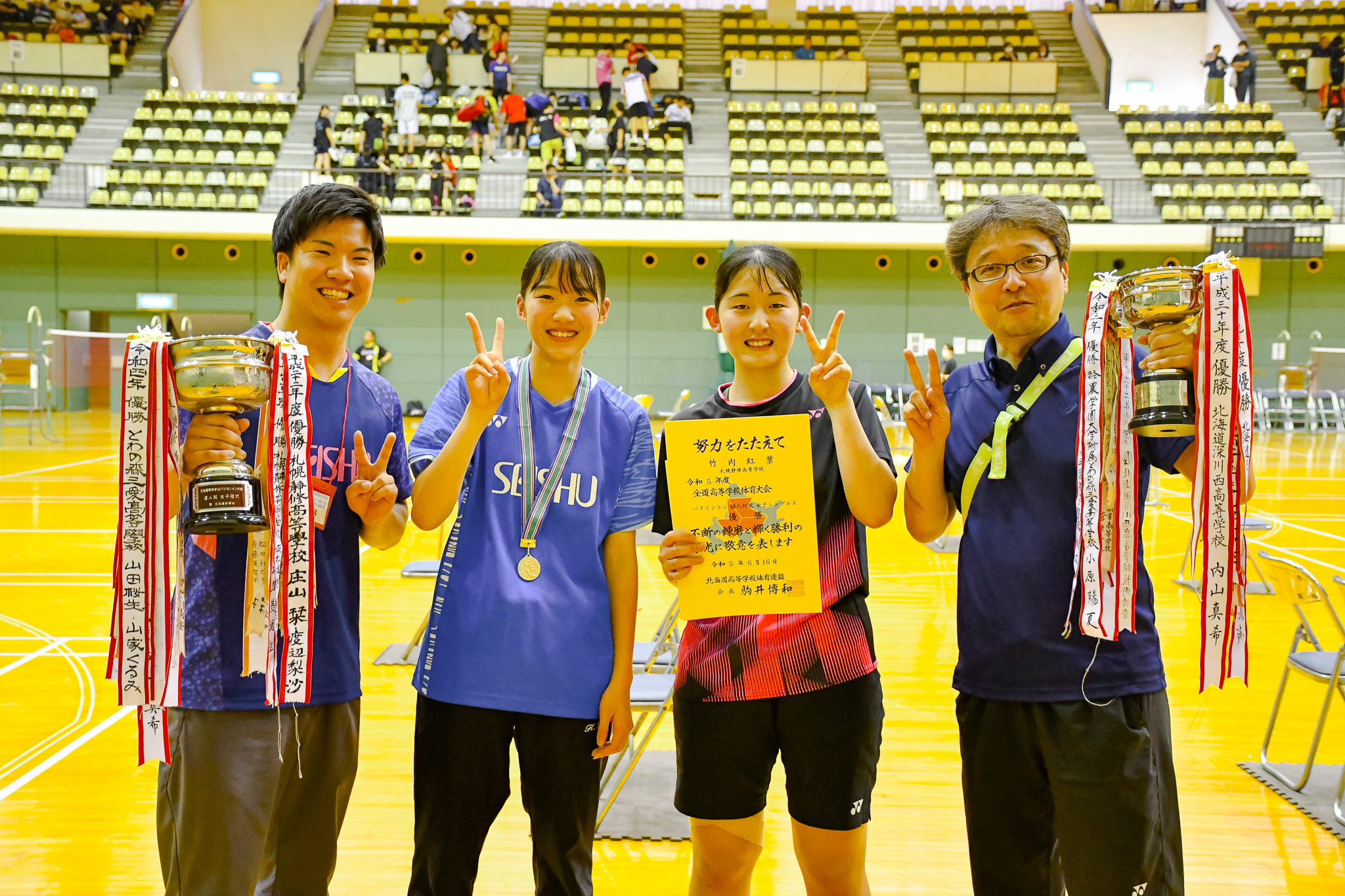 6月13日(火)~16日(金)小樽市総合体育館にて第75回北海道高等学校バドミントン選手権大会兼第74回全国高等学校バドミントン選手権大会が行われ、バトミントン部女子が全種目でインターハイへの切符を手にしました。男子は惜しくも目標には届きませんでしたが、団体3位と奮闘しました。「特に優勝した竹内は精神面、技術ともに安定感が増し、完成形が見えてきました。待ちに待った北海道インターハイ、入賞できる実力は兼ね備えている選手です。共に歩んできたダブルスパートナーの小林も完成度が上がったので、まさに3年間の集大成として完全燃焼し、上位に食い込めるよう頑張ります。」と川畑監督。大会開催にご尽力いただいた大会運営の皆様、日頃よりご支援いただいている関係者の皆様、ありがとうございました。8月17日から5日間に渡り開催される地元開催のインターハイに出場します!北ガスアリーナ札幌46、北海きたえーる(北海道立総合体育センター)で開催されます。たくさんの応援よろしくお願いいたします。