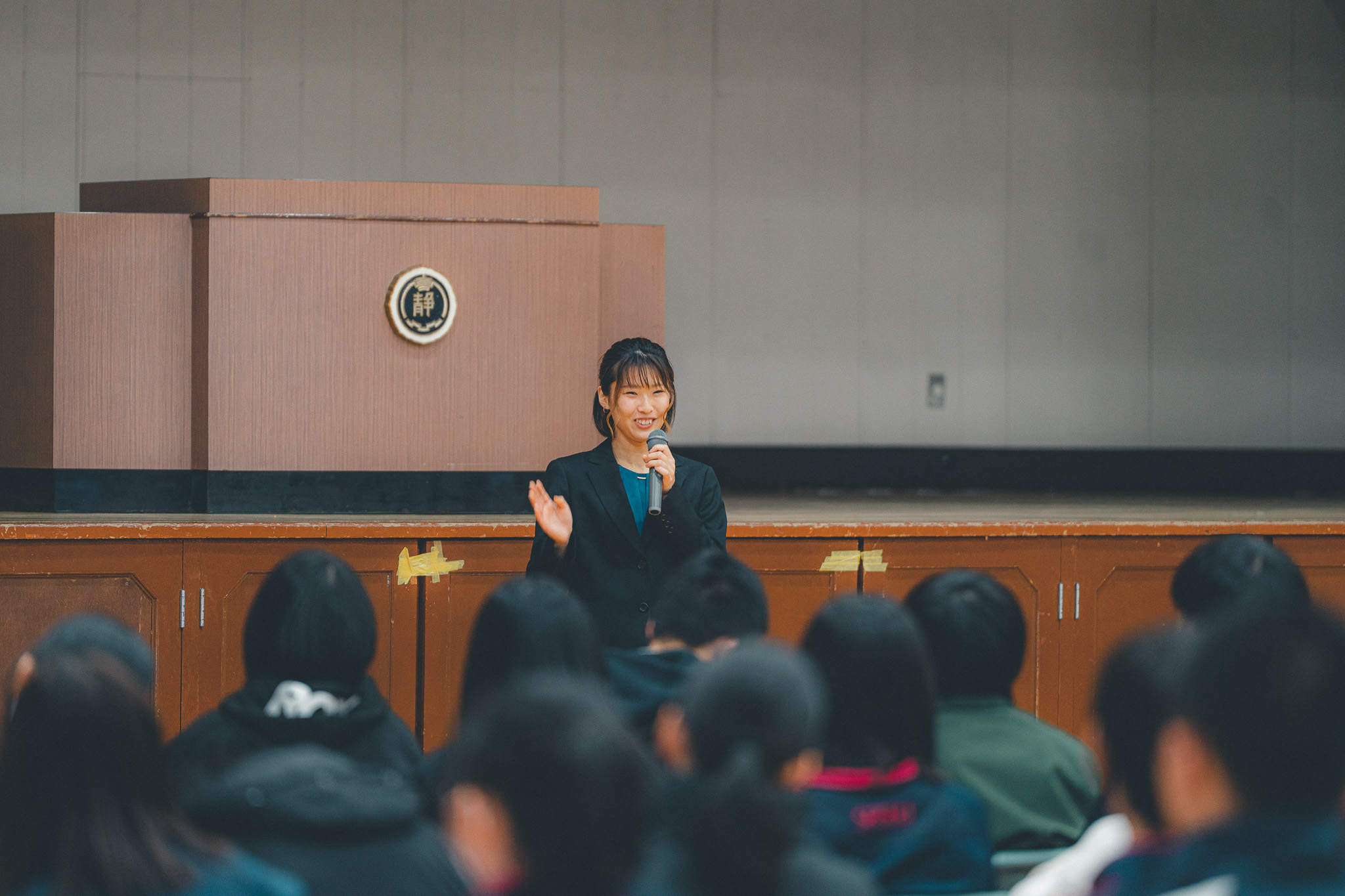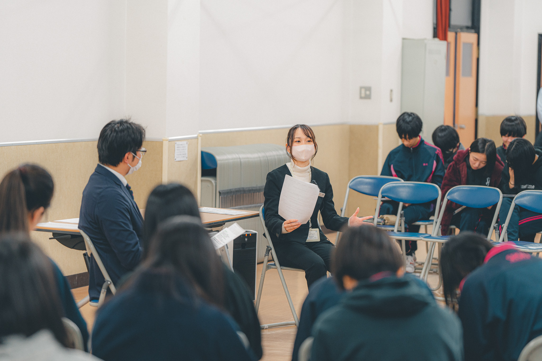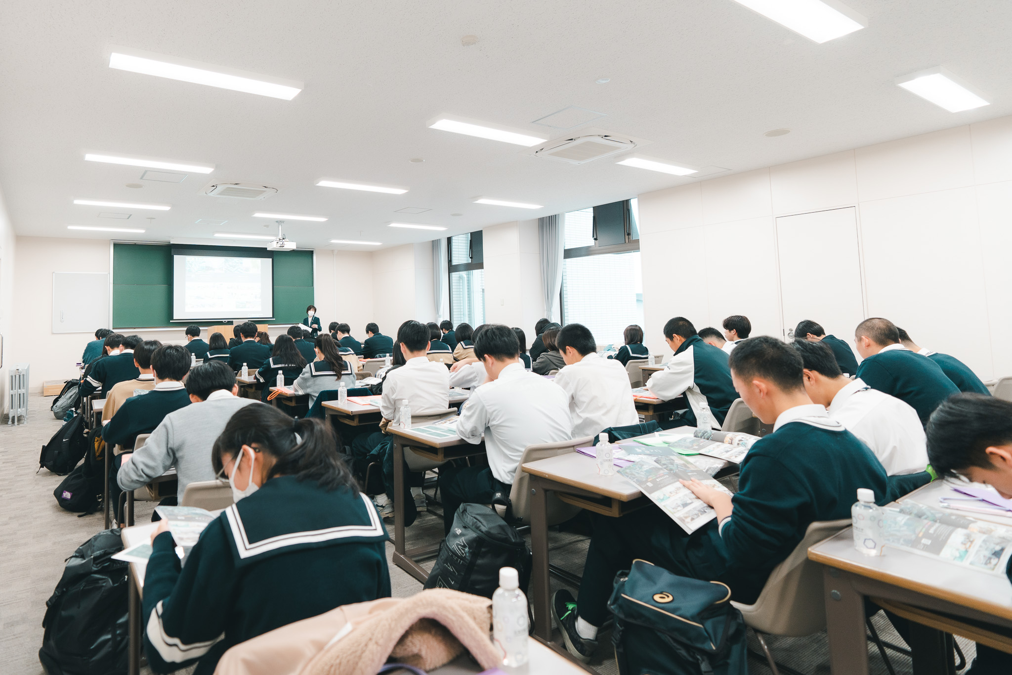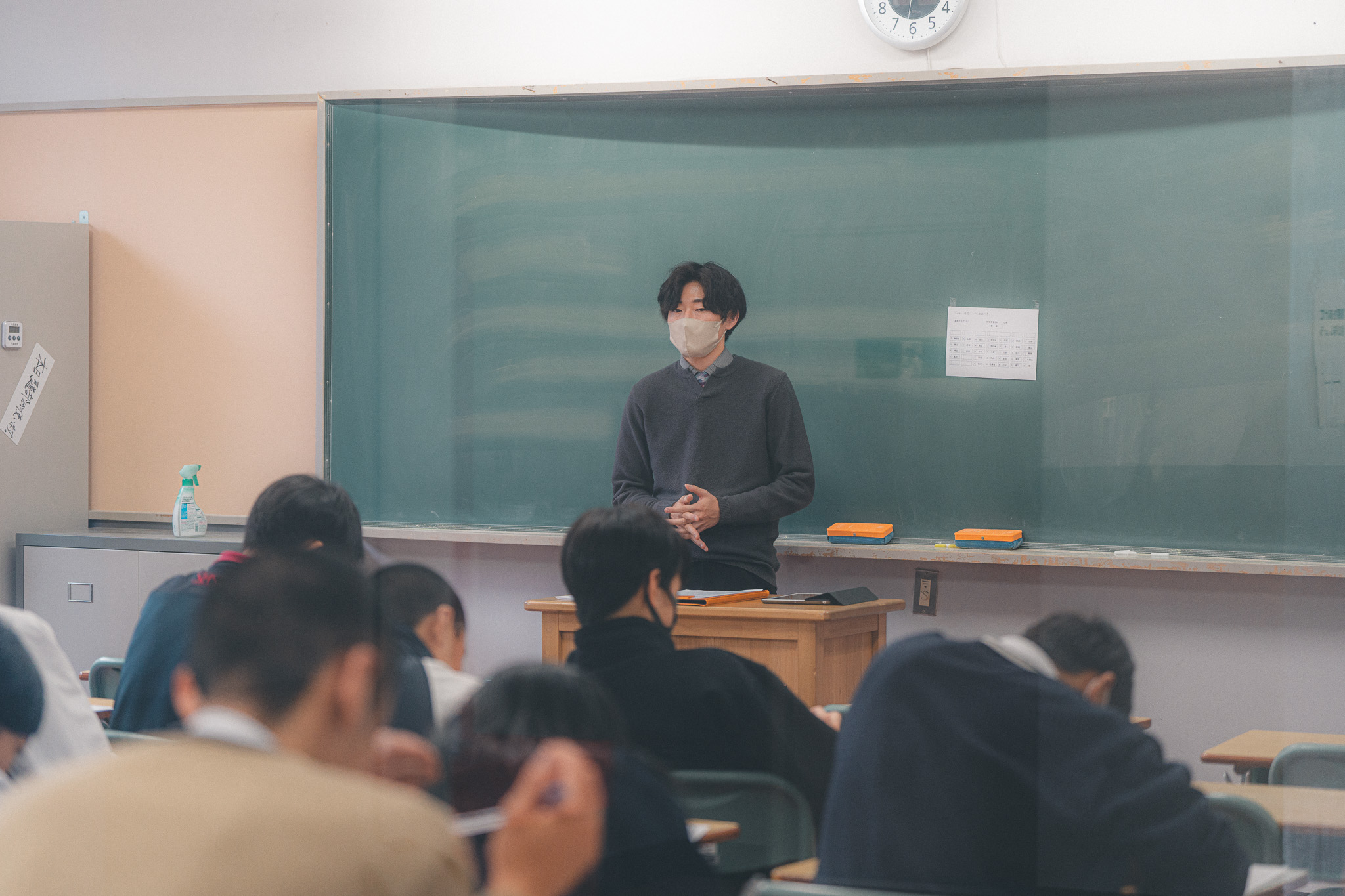 11月24日(金)、1学年対象の進路行事の一環として“卒業生講話”を実施しました。「大学・専門学校への進学がゴールではない」をテーマに、本校卒業生で現在社会人として働いている方を講師としてお呼びし、自身の高校時代の経験や大学生活と高校生活の違い、就職を決めたきっかけなどを、本校教員とのインタビュー形式でお話していただきました。聴講していた生徒にとっても、卒業生という身近に感じる形で進路についての理解・学びを深めることができたようです。1年生の段階から「自分は将来何をしたいのか」「大学・専門学校で何をするのか」を考え、次年度のコース選択や進路を検討していくことで、自分の目標とする進学先に到達できるよう、また進路選択におけるミスマッチをできる限りなくすことができるよう、学年として今後も様々な取り組みを通してサポートしていきます。