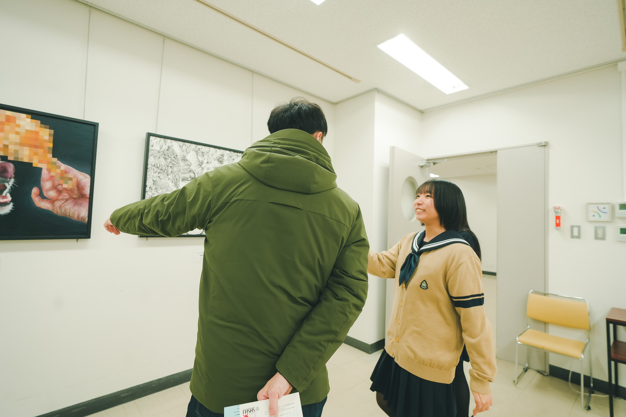 3月16日(土)・17日(日)に漫画部、美術部、書道部による第9回校外展を、札幌市民ギャラリーで開催しました。3年生にとっては集大成となる作品の数々、在校生はこれから迎える高文連等が楽しみになる展示の数々を一般の方、家族、友人に発表する貴重な体験となりました。「周囲の方々への感謝を口にする生徒に成長を感じました。作品の表現を自分の世界観だけで終わるのではなく、作品をみて、感じてくれる皆様と繋がることでさらに自分自身と向き合えるきっかけになれたとおもいます」書道部吉田顧問。「作品を展示するだけではなく、制作過程や私たちの表情をパネル展示することで人柄も見ていただけたらと思っていました。年齢問わず、多くの方から客観的に見てもらいお話ができたことはモチベーションに繋がります。人との繋がりがとても嬉しいです。」本校生徒談。開催にあたりご協力いただいた関係者の方々をはじめ、ご来場の保護者、学校関係者、一般の皆さま、ありがとうございました。