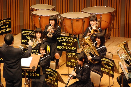 10月24日(金)、札幌コンサートホールKitara(小ホール)で「第22回定期演奏会」を行いました。第1部がクラシックステージ(3曲)、そして第2部がポップスステージ(5曲)から構成され、会場には静修高校関係者をはじめ、歴代の卒業生や一般のお客さんも多数ご来場いただきました。一昨年から取り組んできた沖縄民謡をテーマにした曲「てぃーちてぃーる」や「沖縄幻影」では、実際に沖縄を訪れ、沖縄地区の高校と交流演奏会を行うなど、練習を積み重ねてきた成果を如何なく発揮しました。