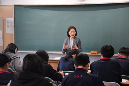 4月25日(金)、看護・医療系に進路を考えている生徒約40名を対象に、学校法人創研学園看予備より講師をお招きし、医療講話を実施しました。講話では、面接や小論文対策に加え、オープンキャンパス参加のポイントや講師ご自身の体験談も交えた内容をお話いただきました。講話終了後には、生徒の質問にも個別に対応していただき、生徒たちは進路への具体的なイメージを深める貴重な機会となりました。本校では日々の進路情報の提供に加え、授業の一環としてこのような取り組みを行い、進路選択をサポートしています。