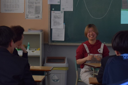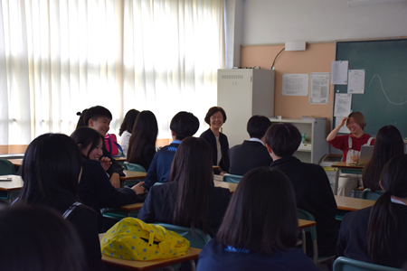 出発前の気持ちや現地での楽しかったこと、苦労したことなど、実際に体験したからこそのリアルな話に、生徒たちは熱心に耳を傾けていました。