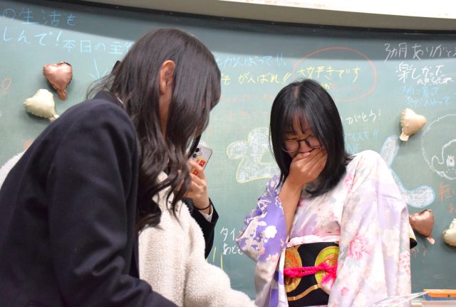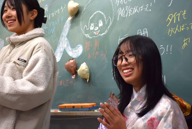 タイからの留学生アイちゃんが、8月から約4か月間にわたる静修高校(普通科総合)での留学生活を終え、帰国しました。幼い頃から日本の文化やアニメに親しんできたアイちゃんは、お父さんが日本への留学経験を持ち、日本語を教えてくれたことをきっかけに、「もっと日本語を学びたい」と思うようになったそうです。留学前から、日本ならではの文化を体験できる部活動に参加したいと考えていたアイちゃん。静修高校では華道部と茶道部に所属し、活動を通して日本の伝統文化に触れるとともに、部活動の仲間やクラスの友だちも多くのことを彼女から学びました。授業では分からないことも多く、最初は戸惑う場面も最初はあったようですが、「すべてが貴重で素晴らしい経験だった」と振り返ります。思い出に残っている出来事として、クラスメイトと一緒にお弁当を食べた時間を挙げてくれました。タイでは食堂を利用することが多いため、教室でお弁当を囲む時間は新鮮で、日本の学校生活ならではの体験だったそうです。一方で、来日直後は思うように日本語が話せず、会話に苦労することもありました。それでも、日本の友だちやホームステイ先のホストファミリーと積極的に会話を重ね、電話では家族に日本語を披露するなど、日々努力を続けてきました。「アイちゃんならできるよ」「頑張って」といった周囲の励ましが、大きな支えになったそうです。静修高校で過ごす最後の日には、クラスメイトがお別れ会を開き、色紙や動画のサプライズプレゼントが贈られました。国や言葉の違いを越えて出会い、4か月間で深まった友情を感じながら迎えた別れの時間は、笑顔と涙に包まれた心温まるひとときとなりました。静修で出会った友だちへの感謝や「もっと留学していたいし、本当に寂しい」と涙ながらに語るアイちゃんの言葉が印象的でした。今後は日本語能力検定の勉強に力を入れ、いつか日本、特に北海道に住みたいと話してくれたアイちゃん。静修高校での学びや出会いが、これからの人生を支える大切な経験となることを、心より願っています。