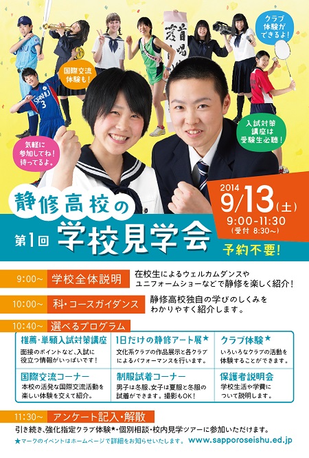 9月13日(土)9:00~11:30に中学生・保護者を対象にした「学校見学会」を開催します。