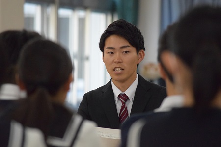 6月17日(月)、進路部主催の進路講話に3名の卒業生が登場し、大学受験を乗り切るためのアドバイスを後輩たちに向けて話してくれました。普通科特進コースを卒業し、藤女子大学に進学した山口さんは、国立大学に合格しながらも、現在の大学を選択した理由を語り、大学への進学は「目的と手段」を大切に検討してほしいと語ってくれました。また、普通科総合コースを卒業し、北海学園大学に進学した田中くんは、就職活動での体験談を伝え、高倍率を勝ち抜き企業への内定を勝ち取った秘訣を自身の「大学生活の時間の使い方」をふまえて教えてくれました。最後に普通科総合コースを卒業し、小樽商科大学に進学した本間くんは、高校入学時点では到底合格できるような成績ではなかったものの、「勉強と部活を両立しながら成績を挽回」していった高校での勉強方法についてアドバイスをしてくれました。